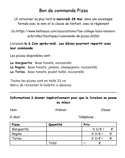 Des bons de commande sont aussi disponibles à la vie scolaire.